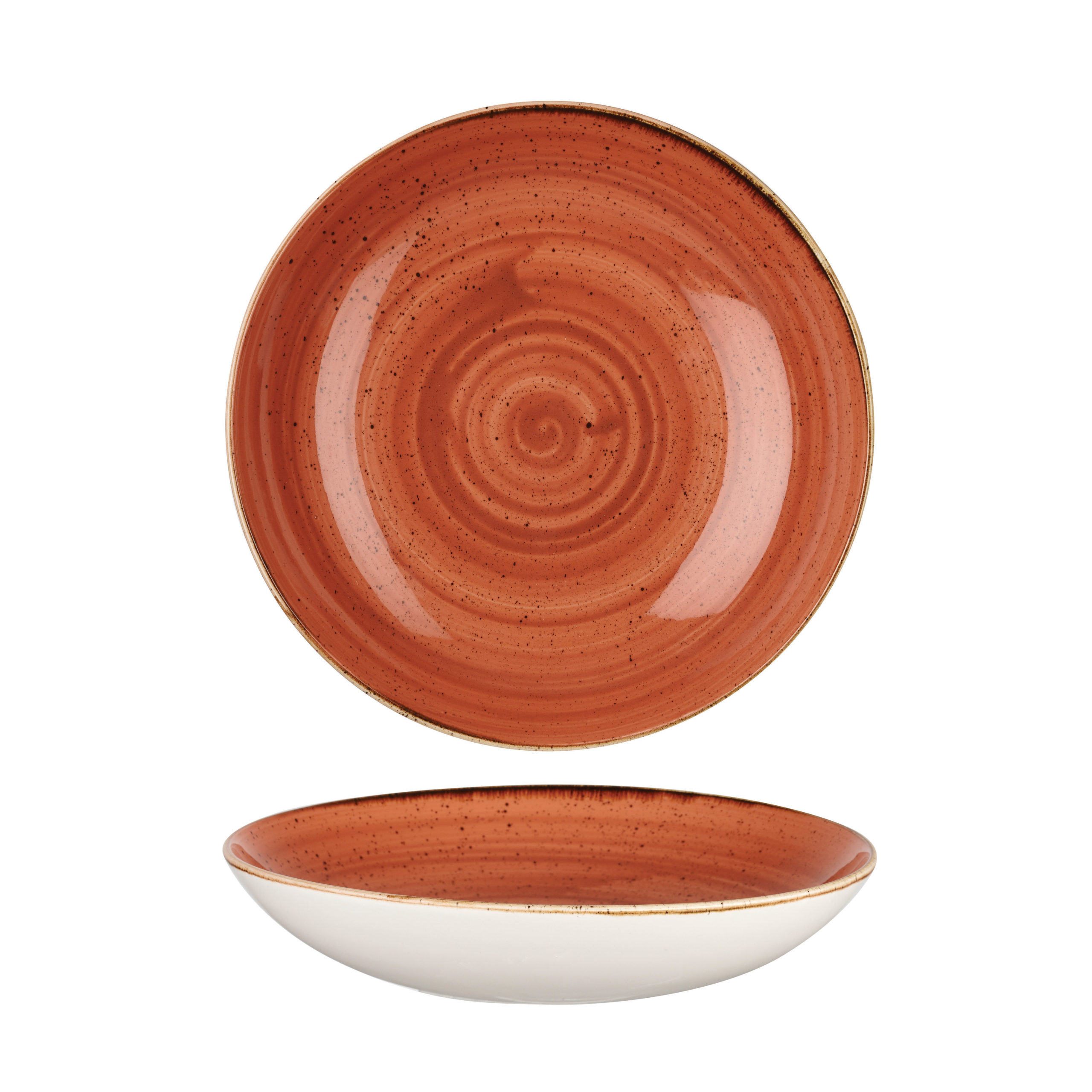 Spiced Orange is decorated in a hand painted colourwash with a fine speckle and rustic band, each piece is hand decorated creating a varied